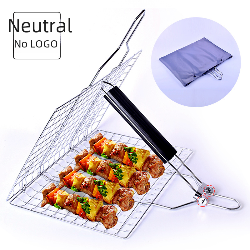 شبكة شواء من الفولاذ المقاوم للصدأ للشواء قابلة للإزالة، شبكة قابلة للطي، سلة شواء مربعة، شبكة سمك مشوية، مشبك محايد