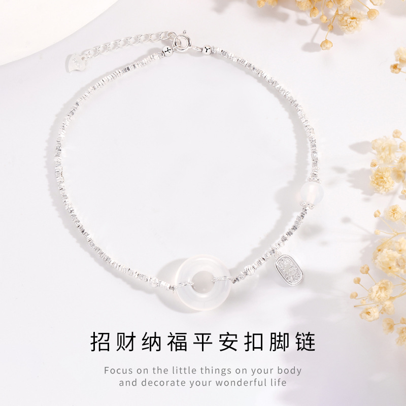 S925 فضة فورتشن نافو بينغ مشبك كسر الفضة خلخال المرأة المد الوطني الرجعية الجديدة الصينية العقيق الأبيض المجوهرات بالجملة