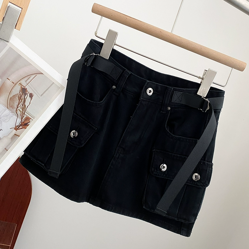تنورة عصرية من الدنيم بجيوب مزدوجة للتخسيس ومضادة للتعرض