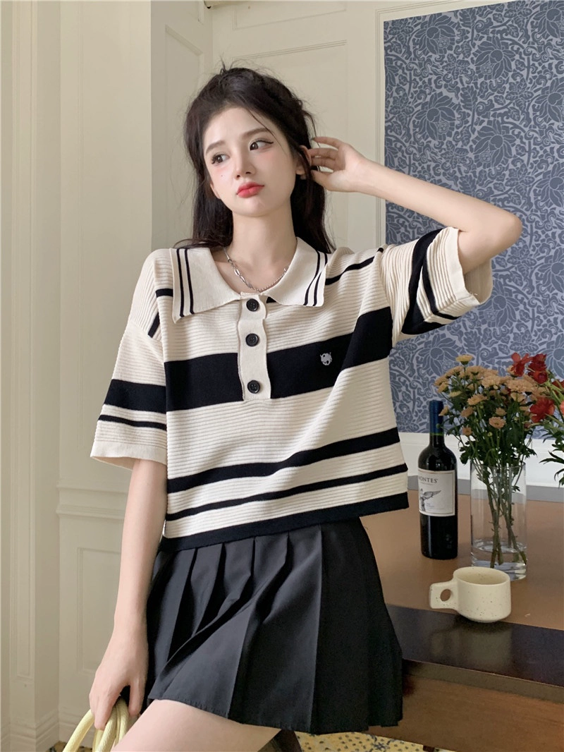 بولو مخطط تي شيرت الصيف سليم أعلى الأكمام القصيرة