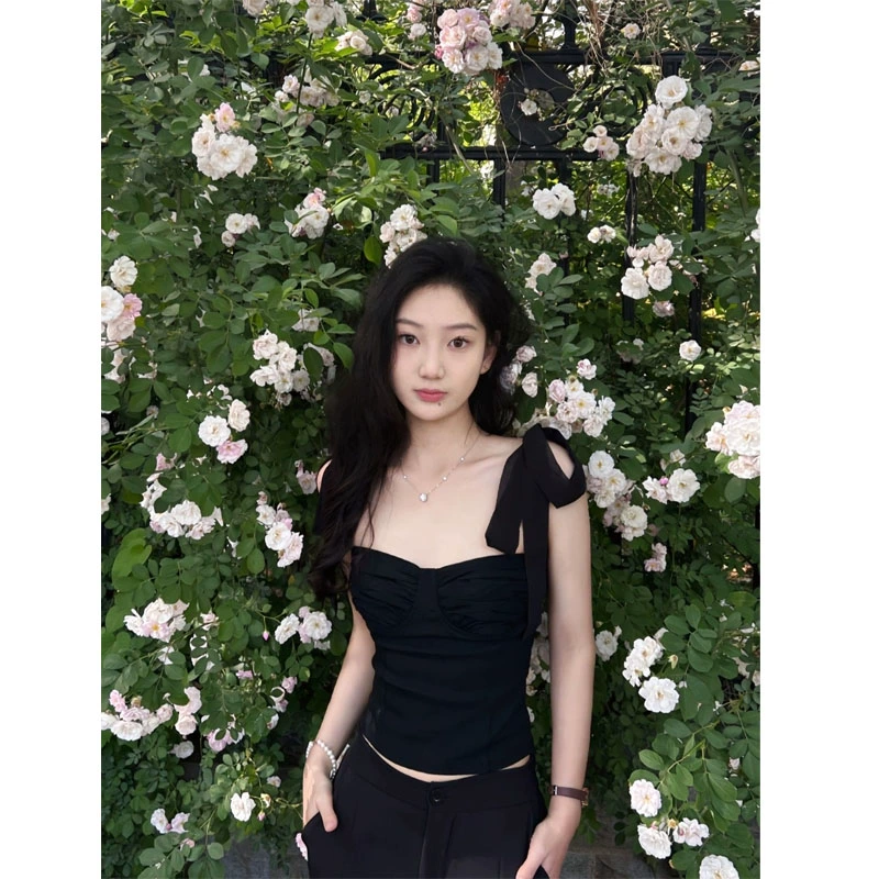 تصميم متخصص أسود مرتفع في سترة تعليق الفتاة الحارة