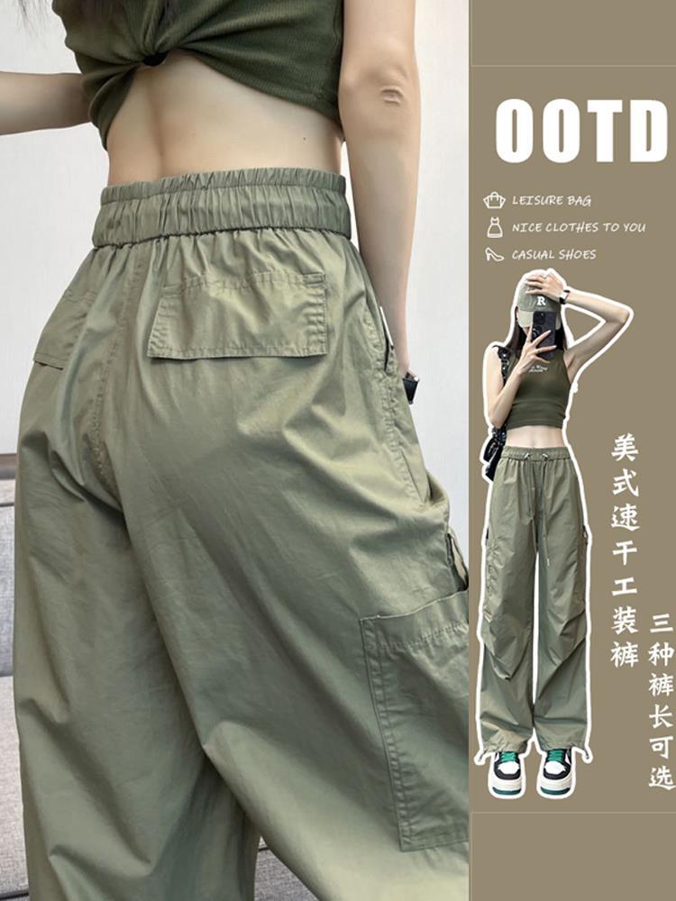 T الجيش الأخضر الأمريكي التجفيف السريع الفخار السراويل النسائية الصيف رقيقة تسلق الجبال السراويل عالية الخصر الرباط عادية واسعة الساق المظليين
