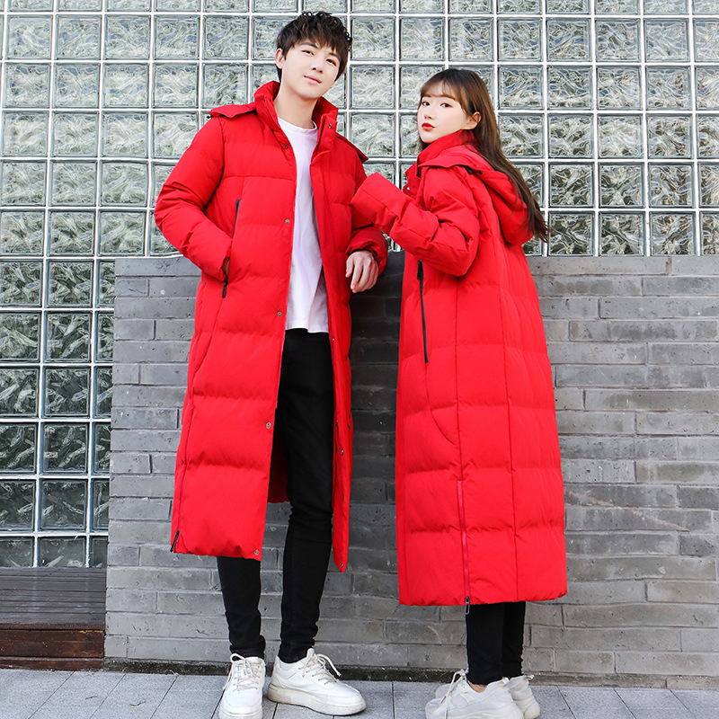 ملابس الزوجين المبطنة بالقطن للزوجين الوالدين والطفل منتصف طول الشتاء على الطراز الكوري فضفاضة سترة مبطنة بالقطن فوق الركبة أسفل سترة مبطنة بالقطن معطف جديد