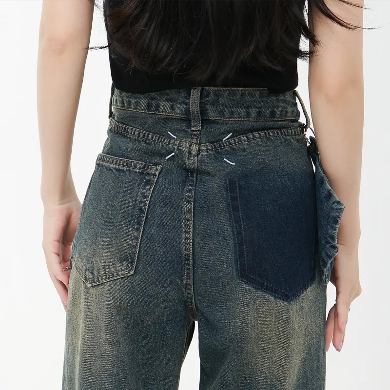 2024 جديد الصيف رقيقة التصميم القديم تحسس مستقيم الجينز النسائية فضفاضة ضئيلة واسعة الساق السراويل