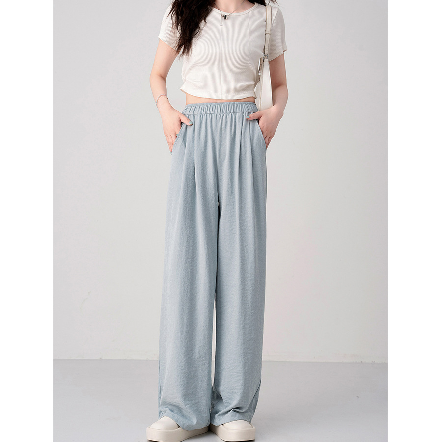 سراويل ياماموتو بيضاء للنساء ربيع جديد بقصة ضيقة، سراويل رياضية فضفاضة ذات ثنيات، سراويل مستقيمة غير رسمية واسعة الساق