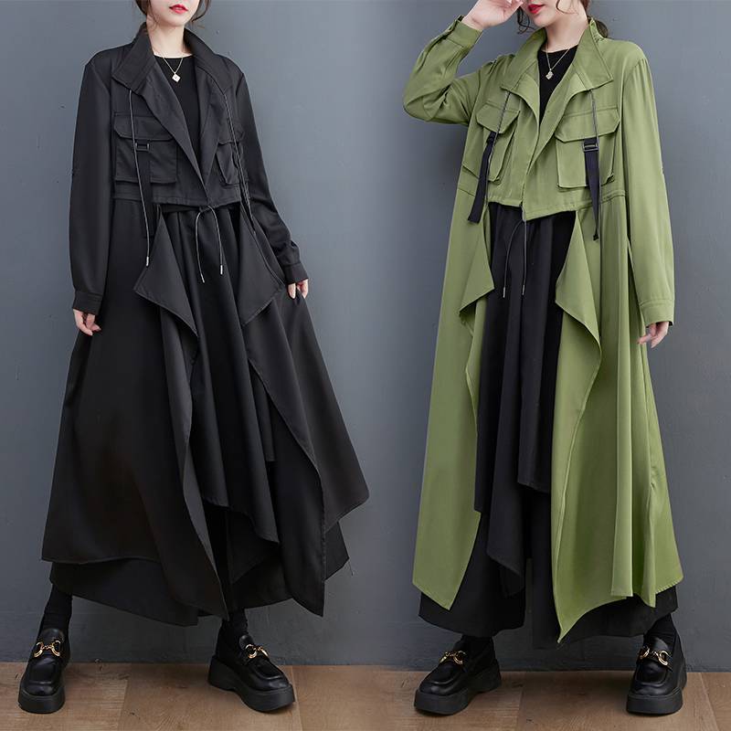 خريف 2024 جديد الكورية نمط حجم كبير بلون مشبك خالية معطف فضفاض التخسيس منتصف طول فستان طوق سترة للنساء