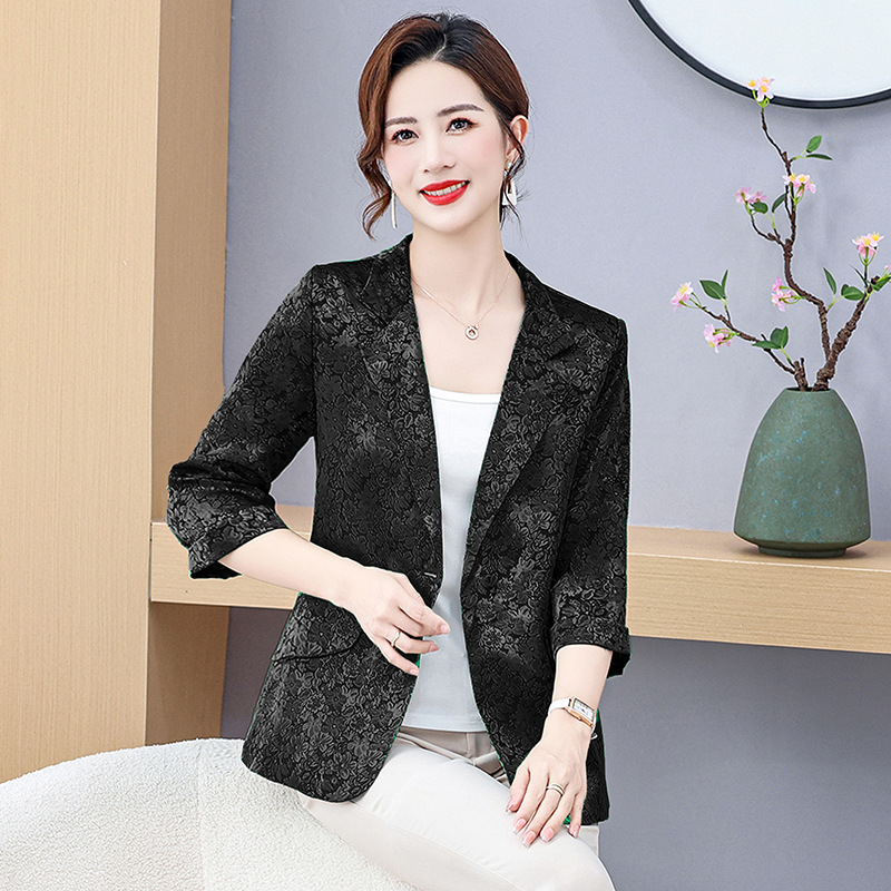 سترة نسائية صيفية غير رسمية بأكمام سبع نقاط في منتصف العمر وكبار السن بدلة صغيرة جديدة سترة جاكار أمي للأعمال