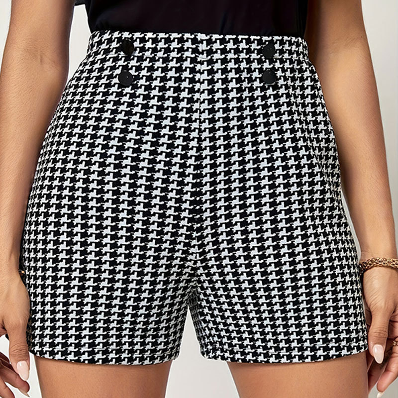 التجارة الخارجية أنيقة كلاسيكية houndstooth مرونة الخصر زر السراويل الزخرفية ركاب كل مباراة السراويل سراويل تقليدية الملابس النسائية