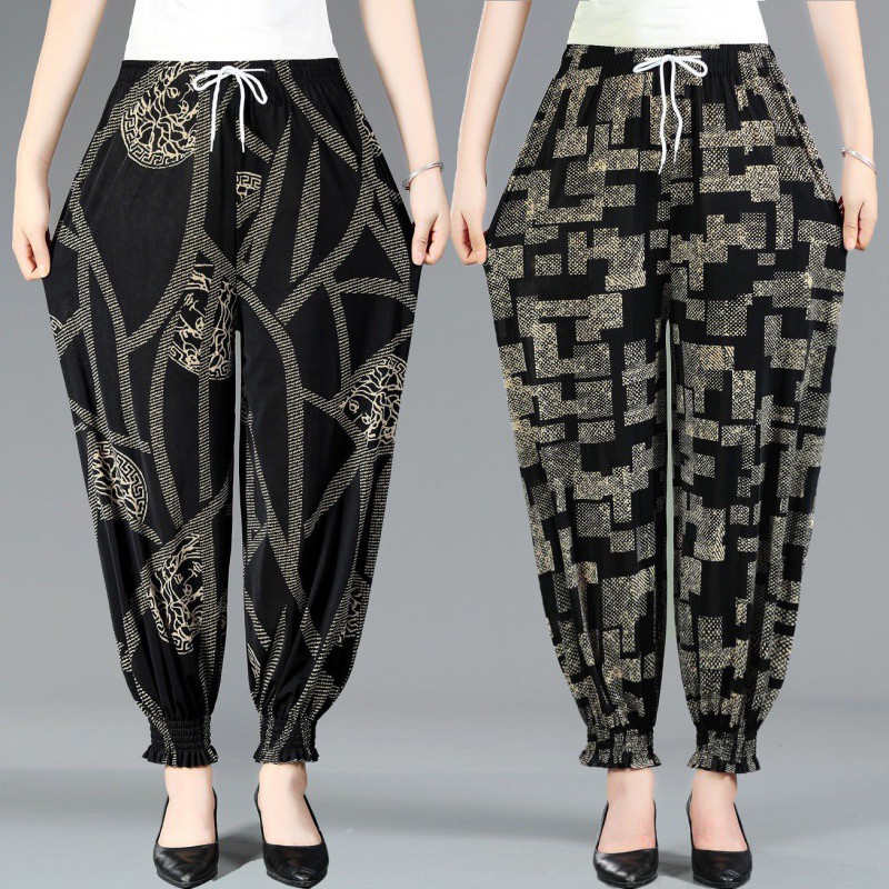 الصيف منتصف العمر وكبار السن المرأة السراويل عالية الخصر مطاطا بالإضافة إلى حجم الأم زهرة السراويل حزام السراويل المضادة للبعوض السراويل عالية الجودة البنطلونات للنساء