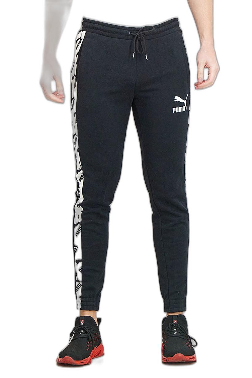بنطلون رياضي مطبوع باللونين الأبيض والأسود للرجال بقصة عادية.