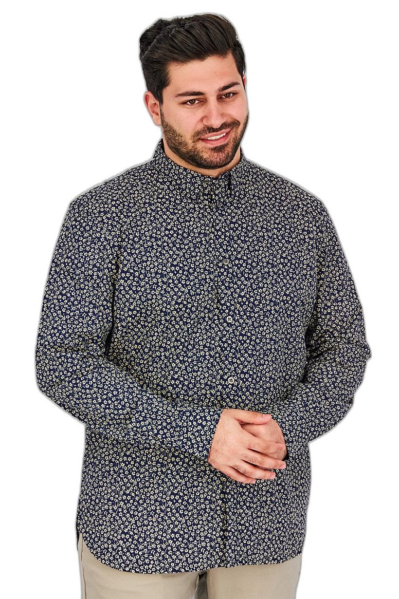 قميص كاجوال بنقشة الزهور باللون الأزرق الداكن/البيج للرجال بأكمام طويلة ومقاس عادي.