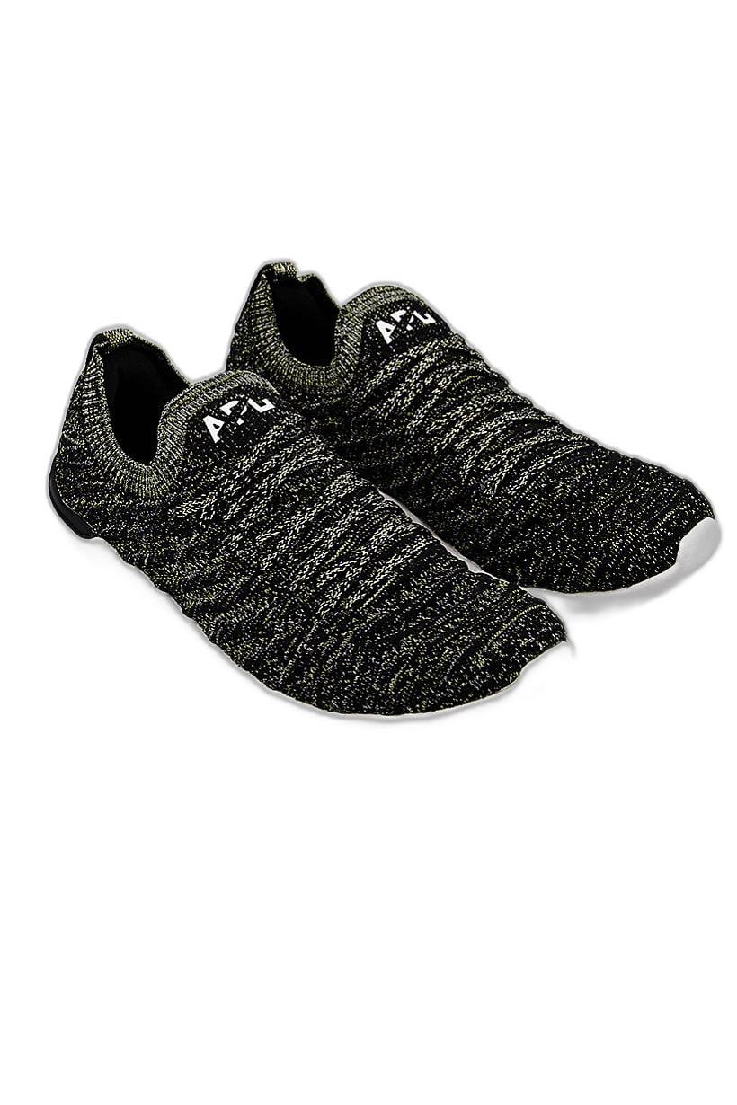 أحذية Techloom Wave النسيجية للنساء باللونين الأسود والذهبي.