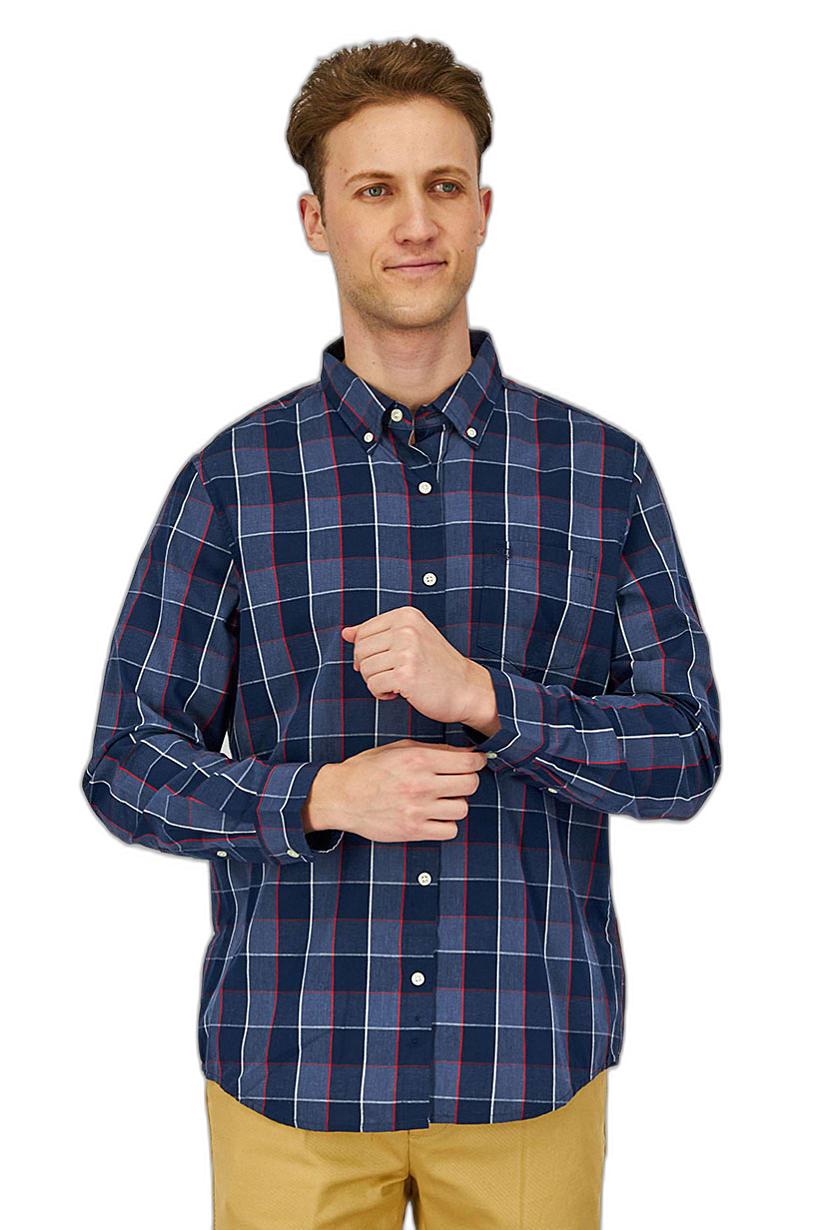 قميص كاجوال منقوش من الدنيم الداكن بقصة ضيقة وأكمام طويلة للرجال.