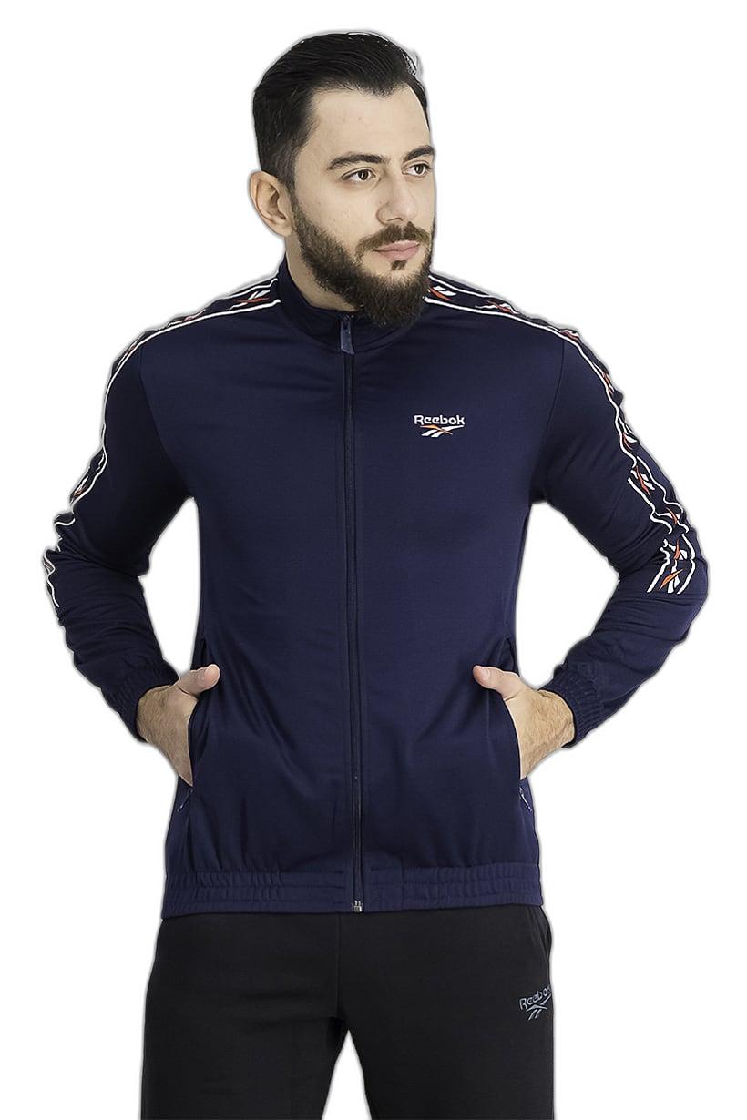 جاكيت رياضي بشعار أسود مناسب للملابس الرياضية للرجال.