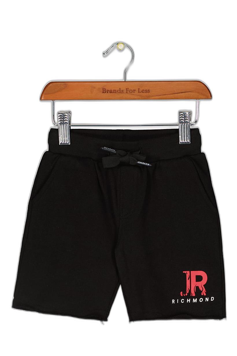شورت أسود برباط مع شعار العلامة التجارية للأولاد.