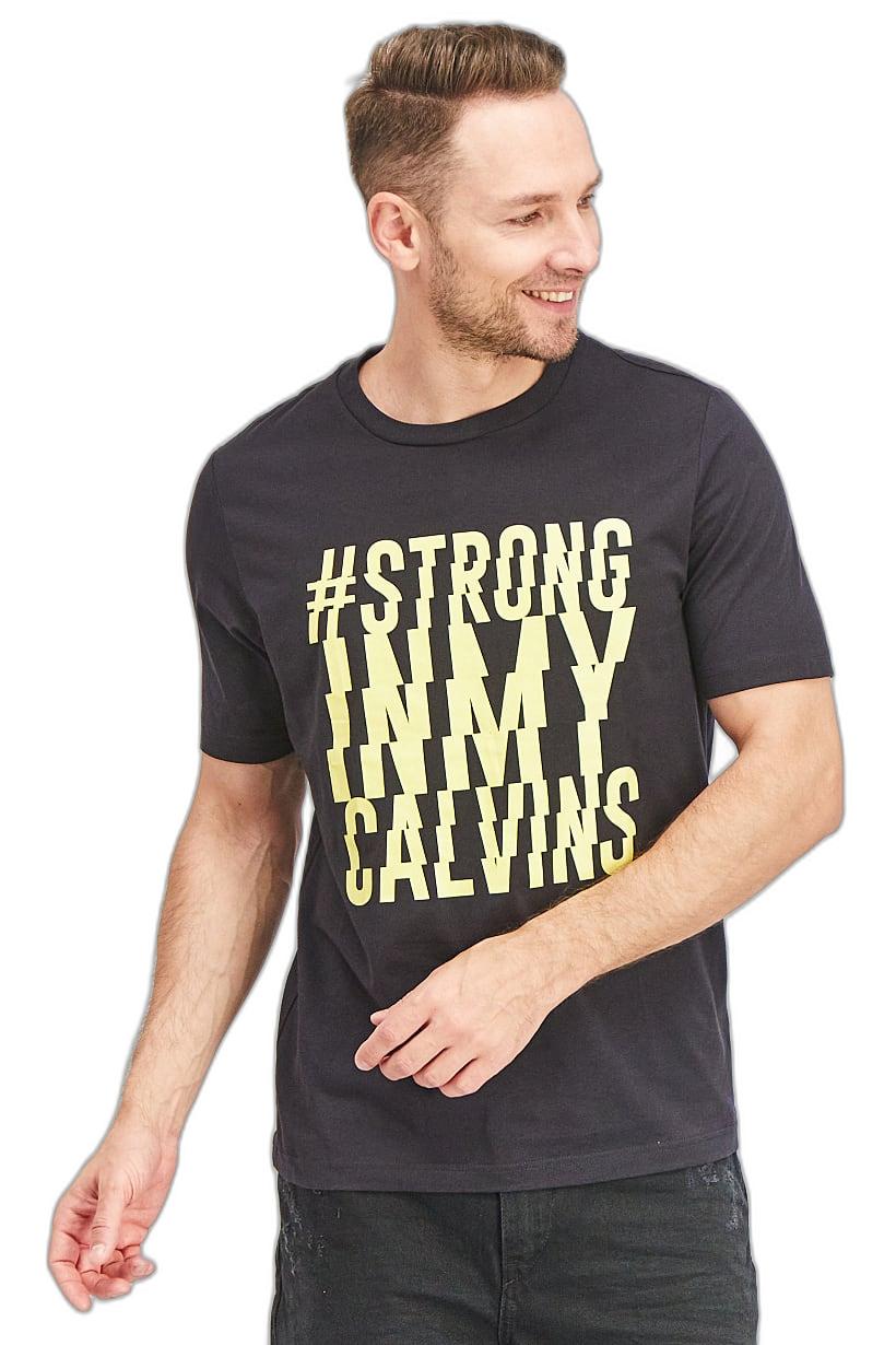 تي شيرت الأداء الرجالي بطباعة جرافيك سوداء.