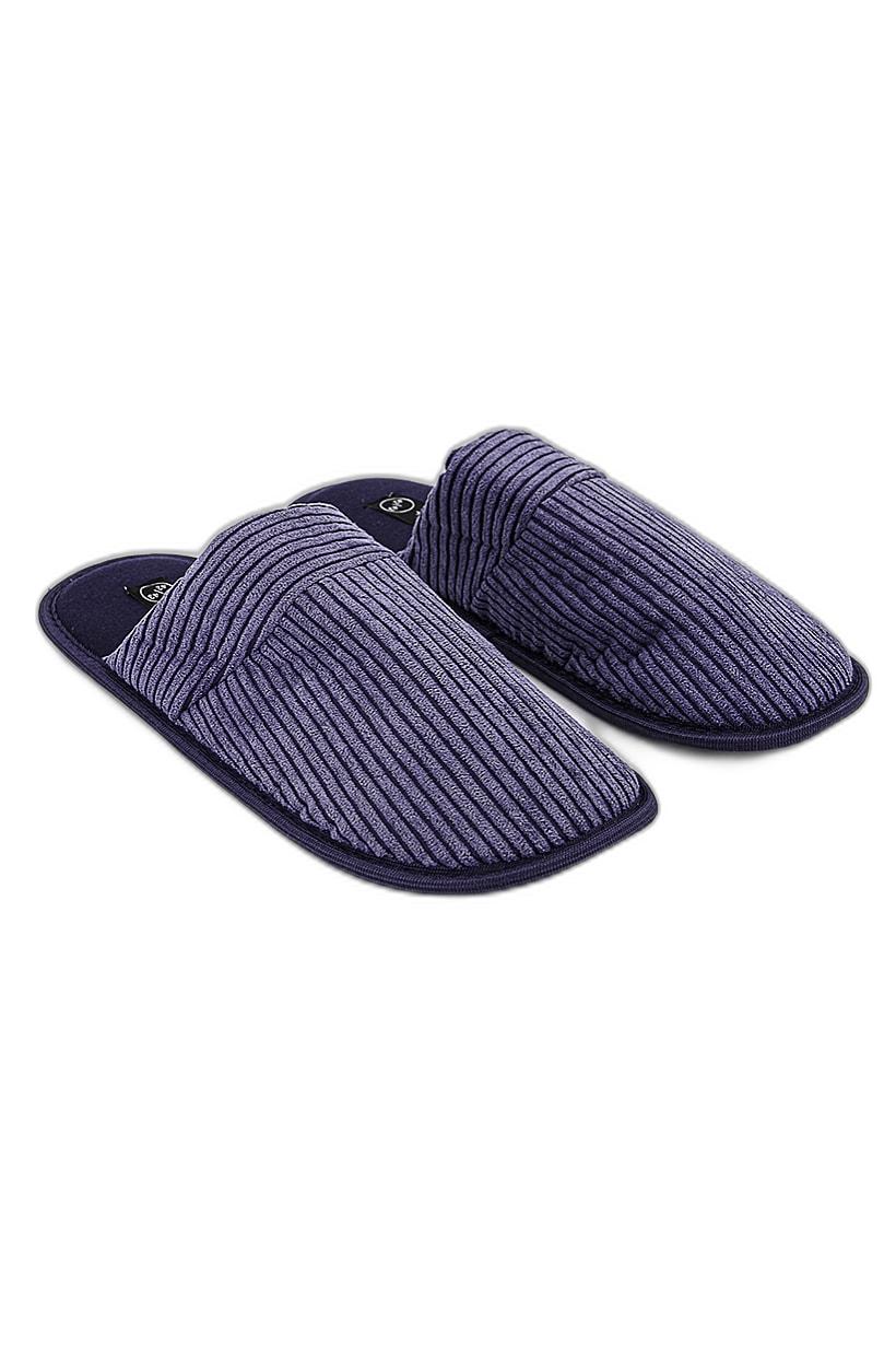 شبشب منزلي للرجال من كوردروي باللون الأزرق الداكن.