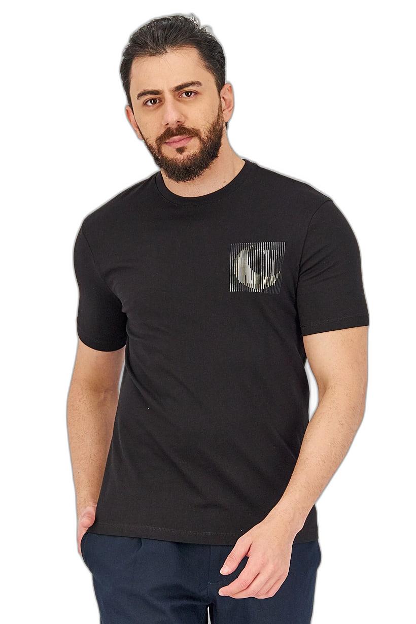 تي شيرت أسود برسومات وأكمام قصيرة للرجال.