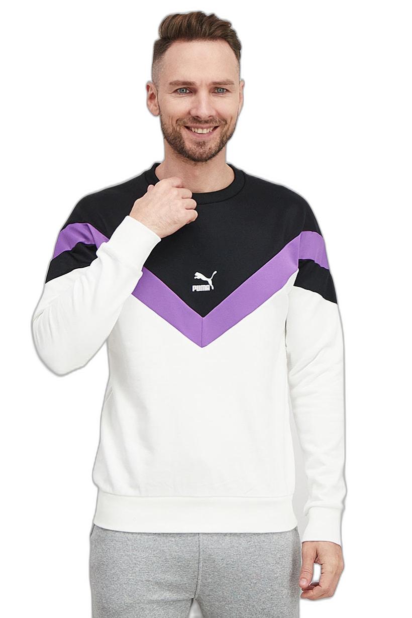 سويت شيرت رجالي رياضي أبيض وأسود وأرجواني يناسب MCS برقبة دائرية.