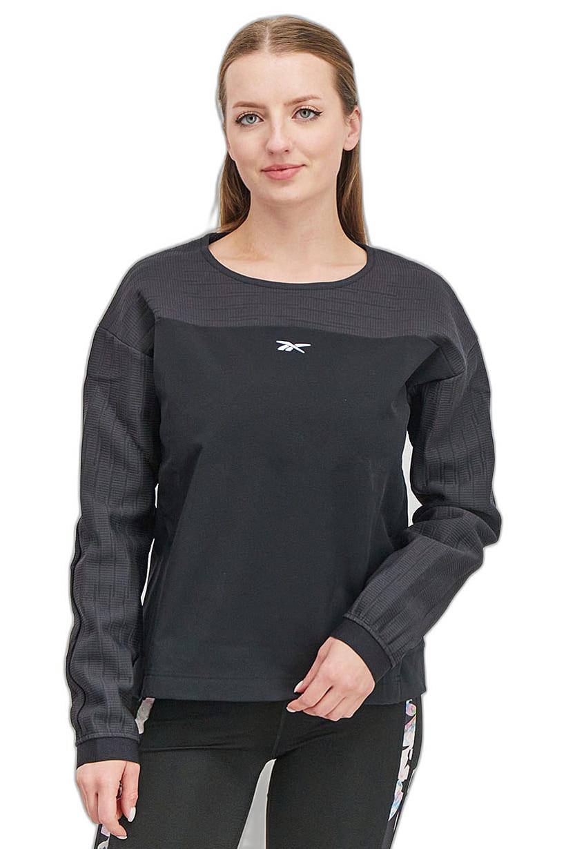 سويت شيرت رياضي أسود بأكمام طويلة للنساء.