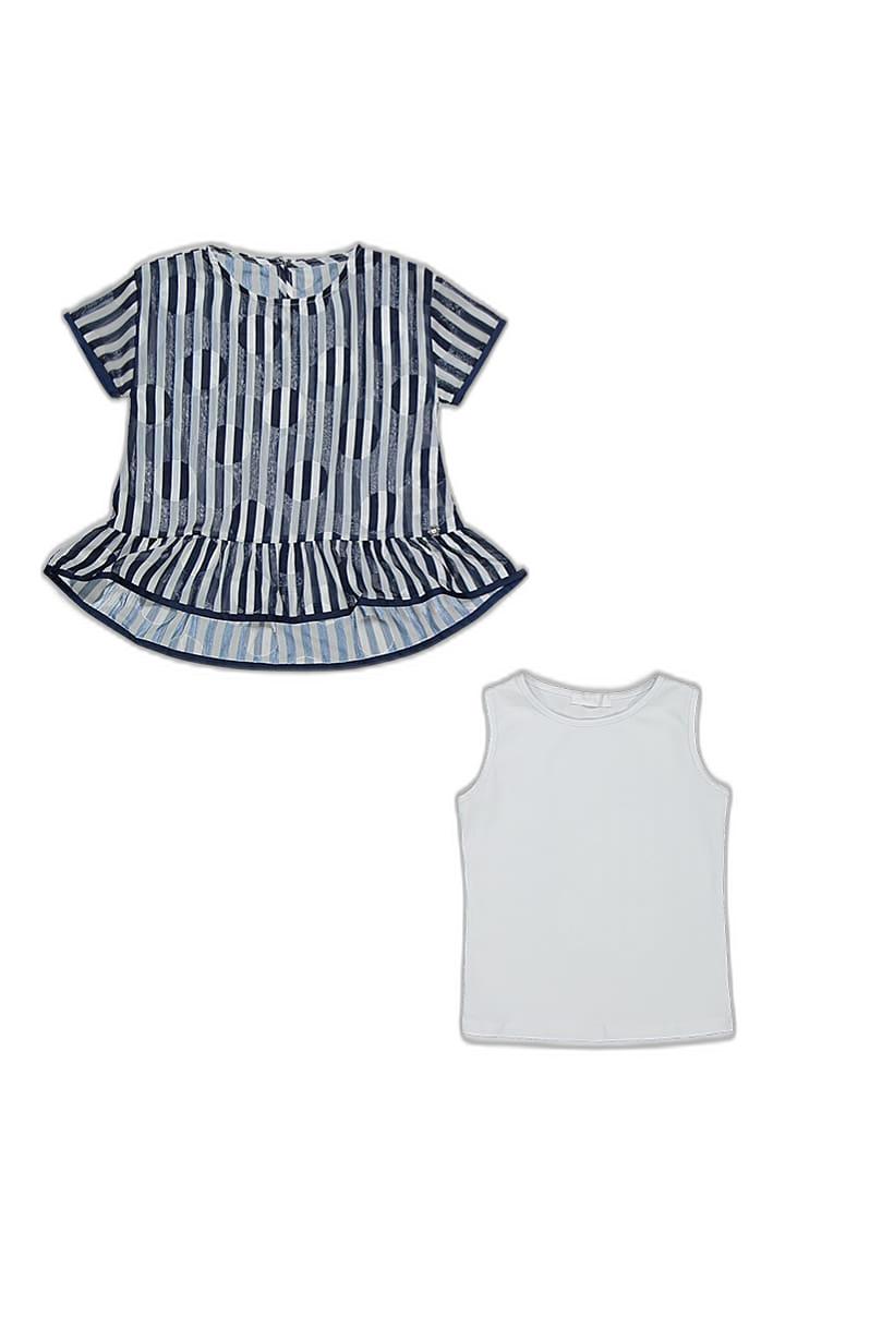 بلوزة نافي كومبو مخططة بأكمام قصيرة للبنات.