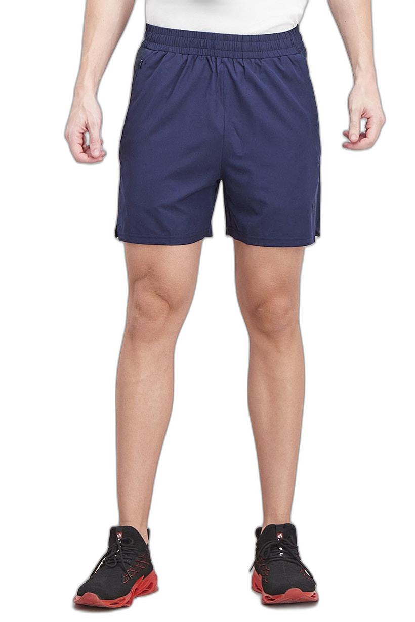 شورت تدريب رجالي باللون الأزرق الداكن مع جيوب بسحّاب.