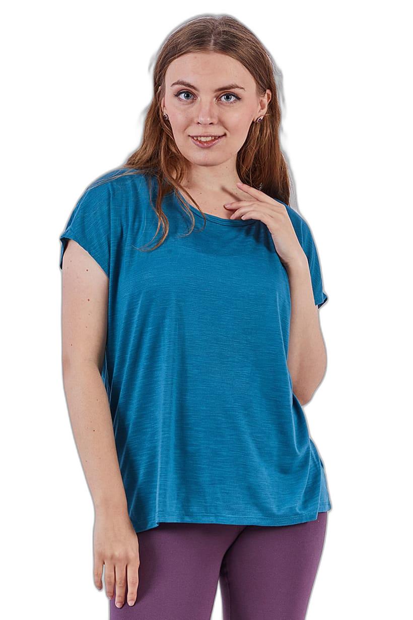 قميص تدريب أزرق بأكمام كاب للنساء بمقاس عادي.