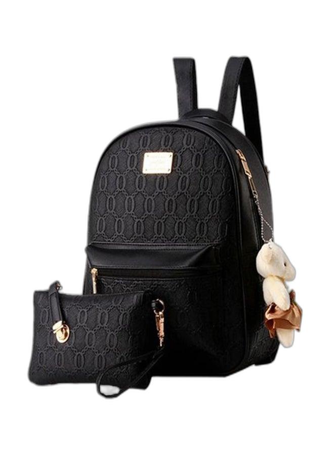 مجموعة محفظة جلدية سوداء وحقيبة ظهر (عبوتان)