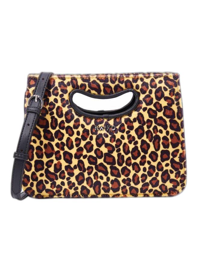 حقيبة ساتشيل باللون الأصفر والأسود والبرتقالي بطبعة جلد الفهد.
