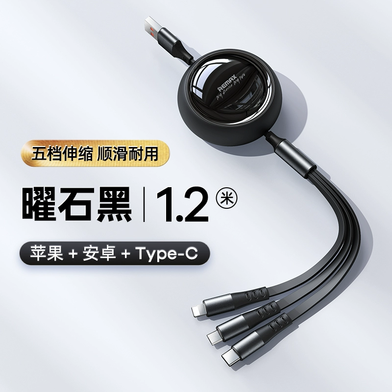 [Bee Surprise Society] Remax Sanheye Data Line One يسحب ثلاثة رؤساء مزدوج USB يمتد إلى الشاحن متعدد الوظائف المطبق Xiaomi Huawei Apple 15Pro الشحن السريع Android