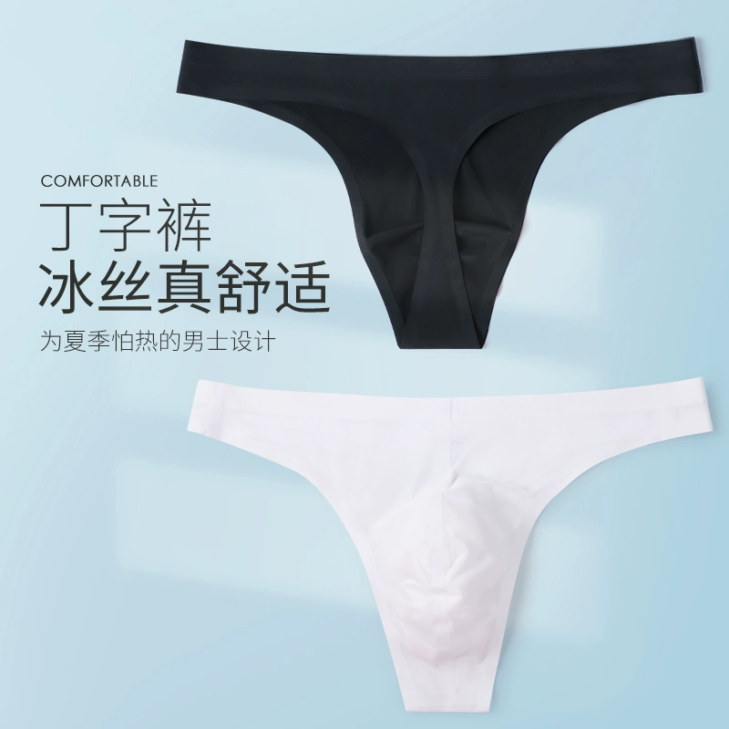 قطعتان من الحرير الجليدي الرائع للرجال رفيع للغاية وغير ملحوم على شكل حرف U محدب كبسولة الفضاء تي شيرت مثير ملابس داخلية واحدة منخفضة الخصر