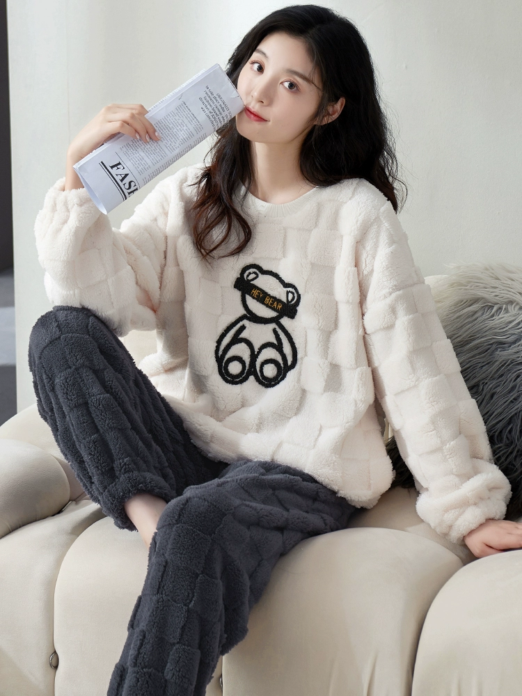 Coral velvet pajamas for women, autumn and winter plus velvet and thickened flannel women’s suits, winter trendy home clothes, winter