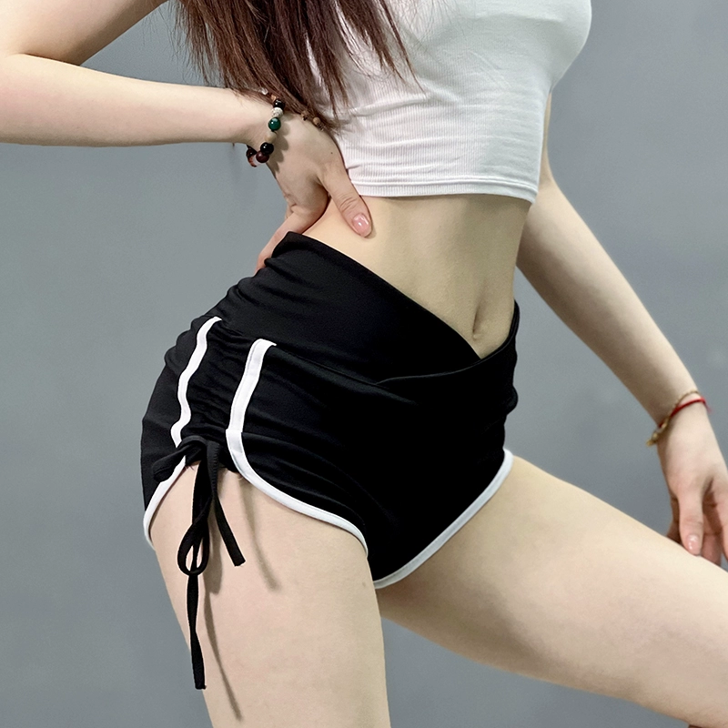 شورتات رقص الجاز، شورتات أوروبية وأمريكية عالية الخصر ضيقة للغاية تعانق الورك، شورت فتاة مثيرة مثير للرقص برباط
