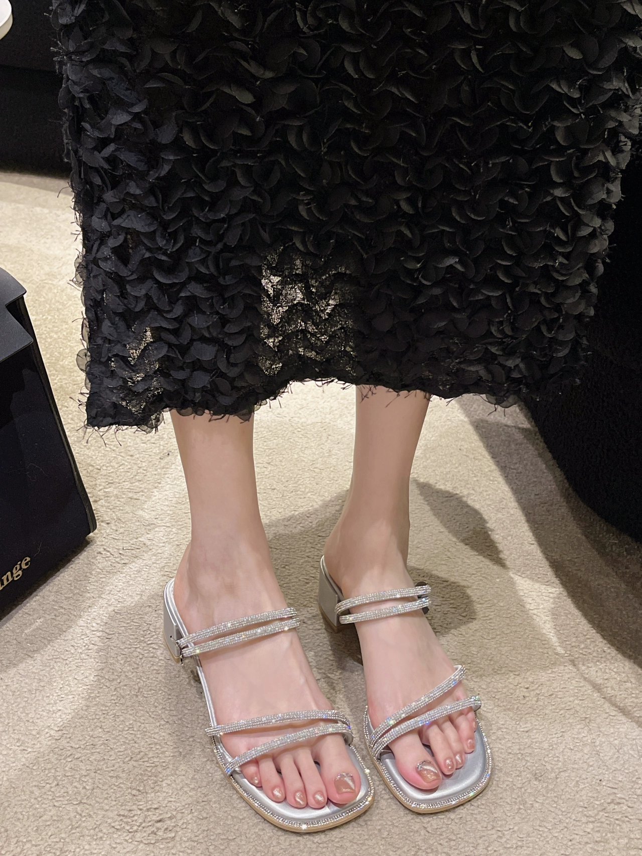 شيا اثنان يرتديان صنادل القوس الخيالية في وسط حجر الراين الكعب