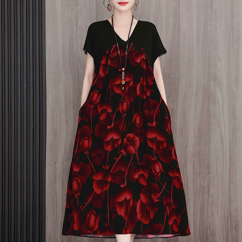 2024 مزاج جديد من القطن على طراز الأم وملابس الحرير الأسمدة الصيفية وزيادة حجم التنورة الطويلة