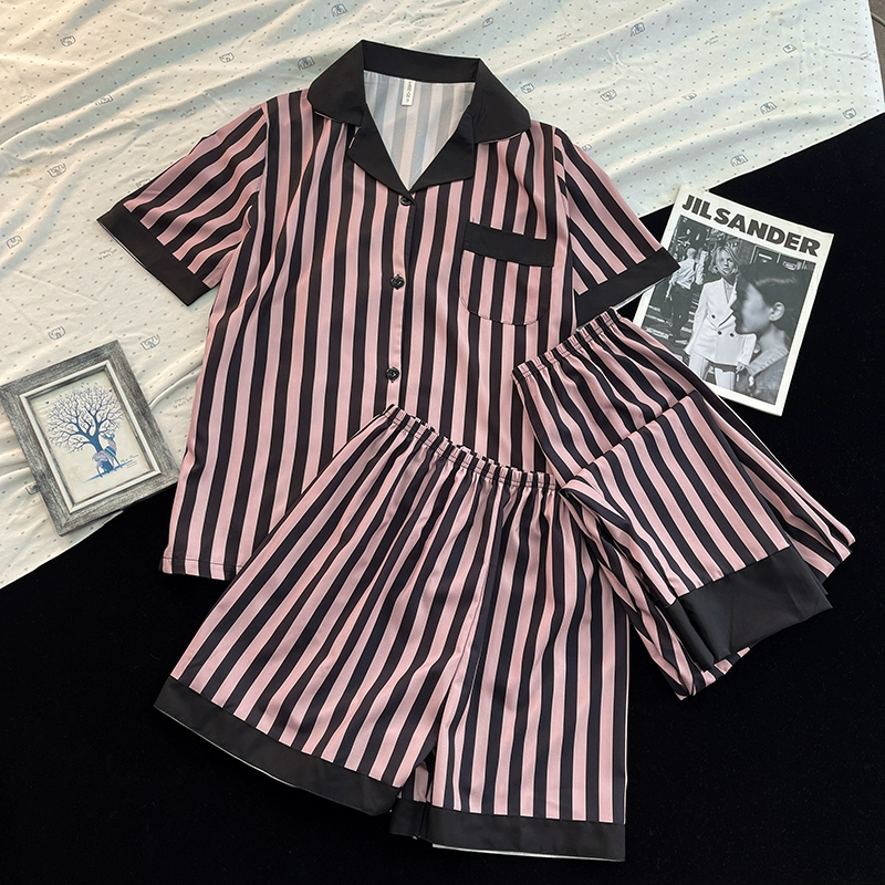 بيجامة صيفية مخططة للسيدات من الحرير الجليدي والتي يمكن ارتداؤها في الخارج