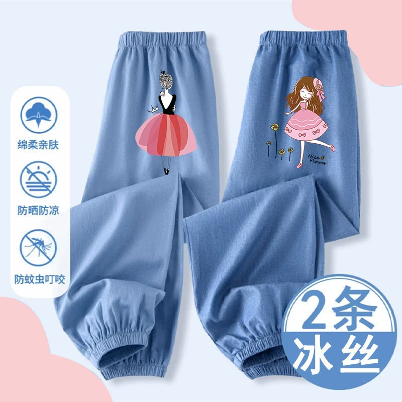 بنطال صيفي رقيق من الحرير الجليدي يسمح بمرور الهواء للأطفال المتوسطين والكبيرين