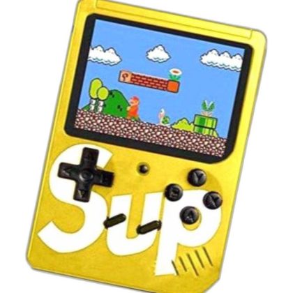 وحدة تحكم محمولة صفراء مع شاشة LCD. |