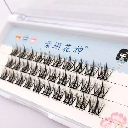 ثلاثية كسولة جديدة مكونة من ثلاثة صفوف مجزأة من الشيطان الصغير باربي مجموعة واحدة من الرموش الصناعية الطبيعية المطعمة ذاتيًا وسيقان رفيعة |