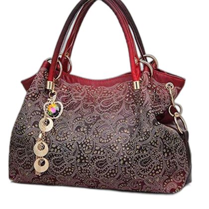 حقيبة يد من جلد البولي يوريثان بشراشيب متدرجة مع طباعة زهور ريترو وتصميم مجوف للنساء. |