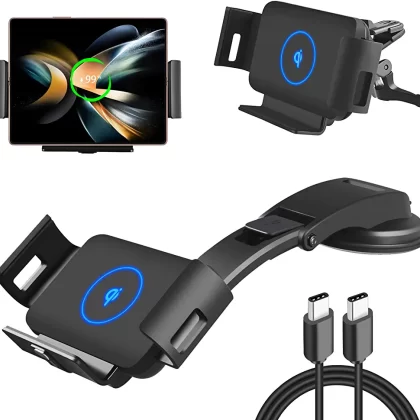 حامل شاحن سيارة لاسلكي لهاتف جالاكسي Z فولد 4/3 وآيفون 13 برو ماكس وجوجل بيكسل 6 برو. حامل هاتف سريع الشحن لسيارتك. |