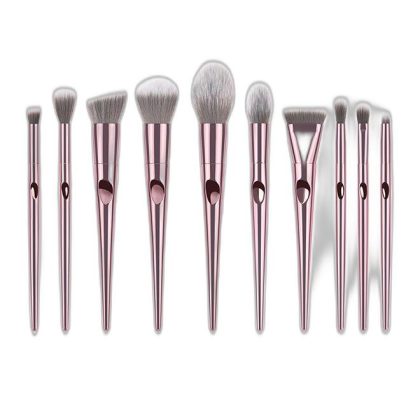مجموعة فرش مكياج متعددة الاستخدامات من الذهب الوردي مكونة من 10 قطع باللون المعدني |