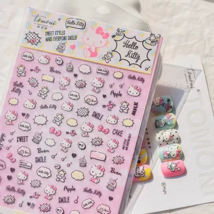 ملصقات أظافر بتصميم رائع لعام 2024 ثلاثية الأبعاد على الطراز الياباني سانريو برسوم كرتونية لطيفة هلوكيتي هالو كيتي |