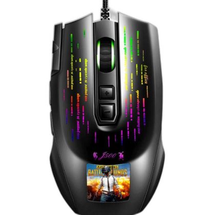 ماوس ألعاب أسود مع برمجة ماكرو سلكية. |