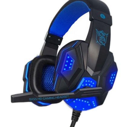 سماعة ألعاب على الأذن مزودة بميكروفون ومصباح LED لمنصات ألعاب متعددة. |