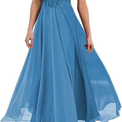 فستان بطول الشاي على شكل حرف A من الدانتيل الأزرق المحيطي لضيوف حفل الزفاف وأمهات العروس، مقاس 4. |