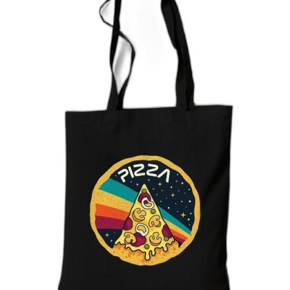 حقيبة حمل قطنية سوداء صديقة للبيئة للتسوق وحمل الكتف. |