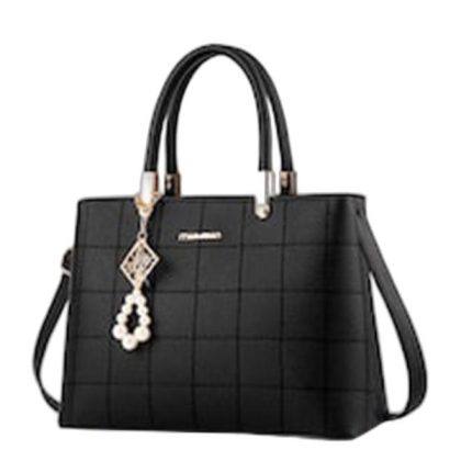 حقيبة سوداء منقوشة بتصميم كلاسيكي وأنيق. |