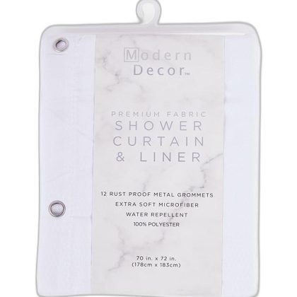 طقم ستائر استحمام أبيض مع بطانة، 178 × 183 سم. |