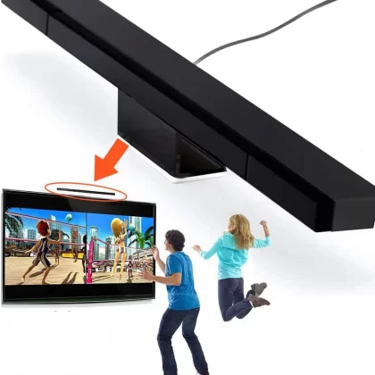 شريط استشعار سلكي يو اس بي من SYOSI لوحدة تحكم نينتندو ويي/وي يو مع حامل ثابت، أسود. |